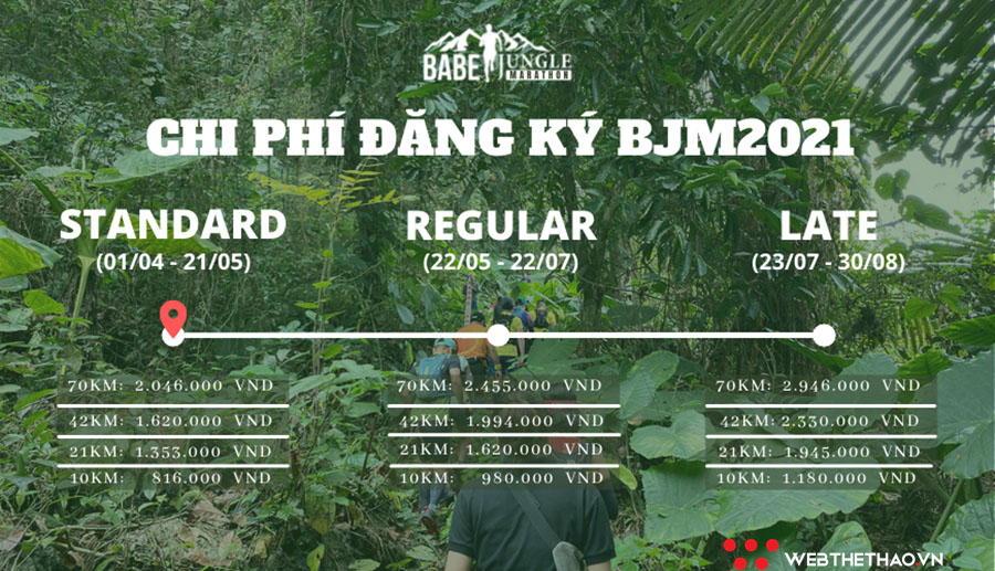 Vào ngày 21/05/2021, cổng đăng ký vé Standard của giải chạy Ba Be Jungle Marathon 2021 sẽ chính thức đóng lại, chuyển sang giai đoạn Regular và chi phí tham gia của mỗi cự ly sẽ tăng 20% so với thời điểm hiện tại.